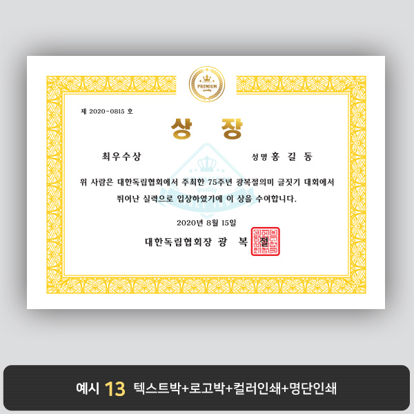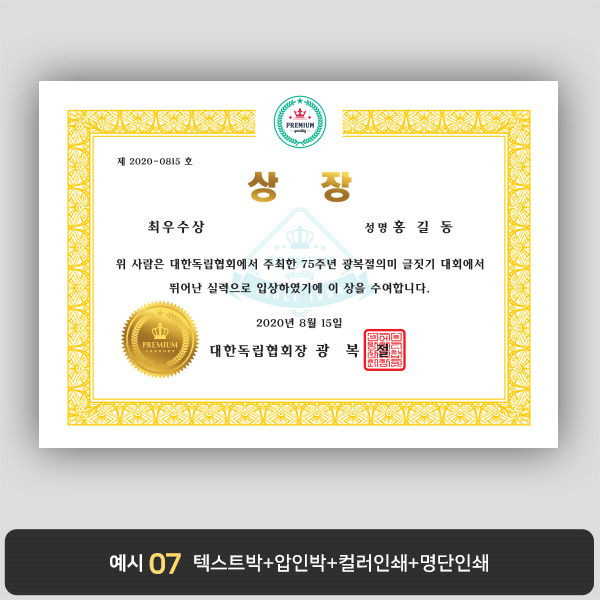 A4 상장용지, 별사이즈 제작가능