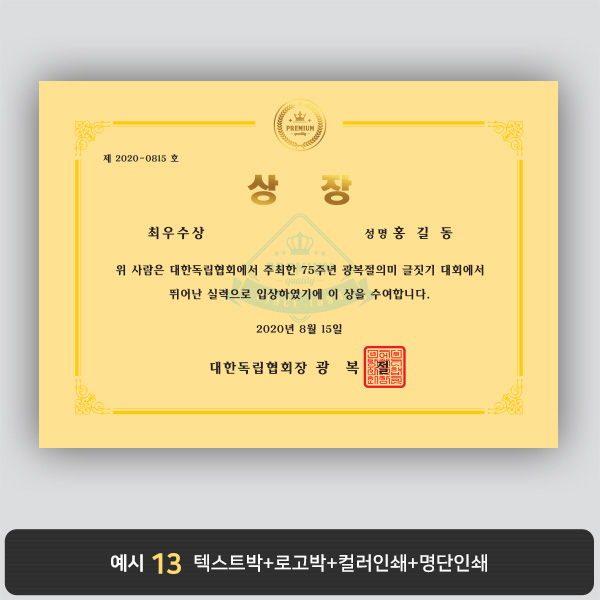 • 제품 시안 작업시 인쇄물의 오탈자 체크는 필수 입니다. 시안 확인 후 오탈자로 인한 반품 및 교환은 불가합니다.