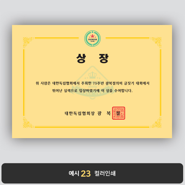 • 상장코리아 제품은 제작상품으로 고객 단순 변심으로 인한 환불 또한 교환은 불가합니다.