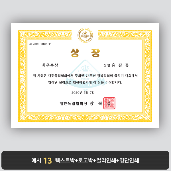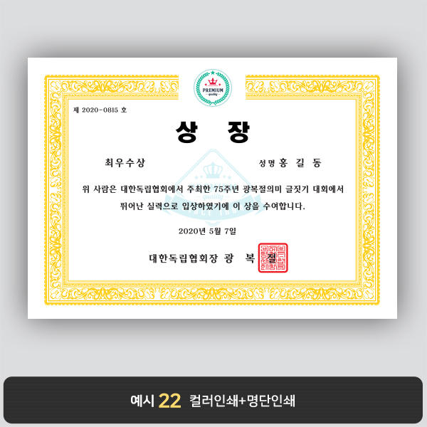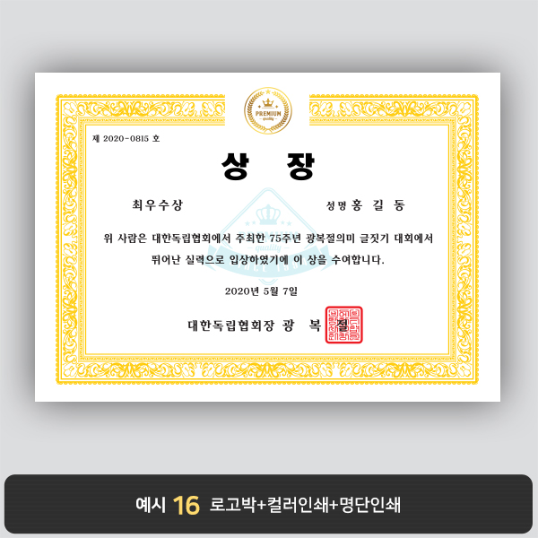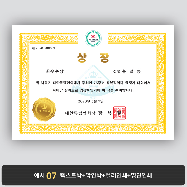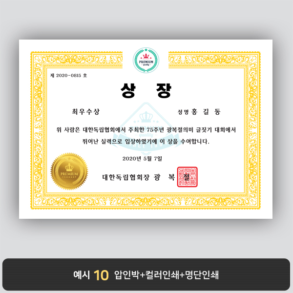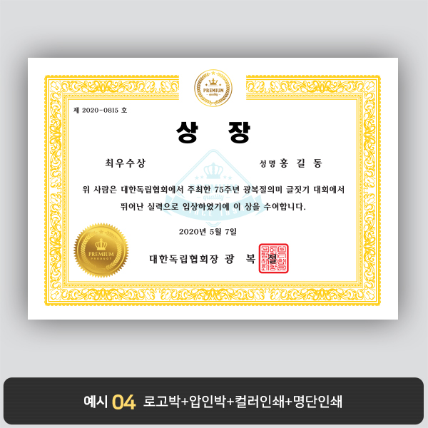 A4 상장용지, 별사이즈 제작가능