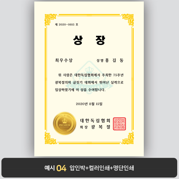 A4 상장용지, 별사이즈 제작가능