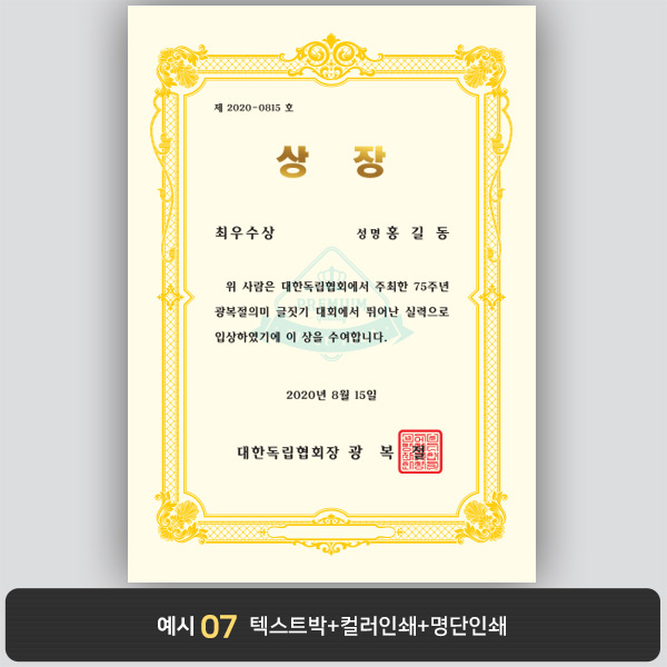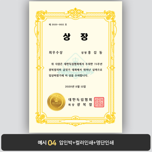 A4 상장용지, 별사이즈 제작가능