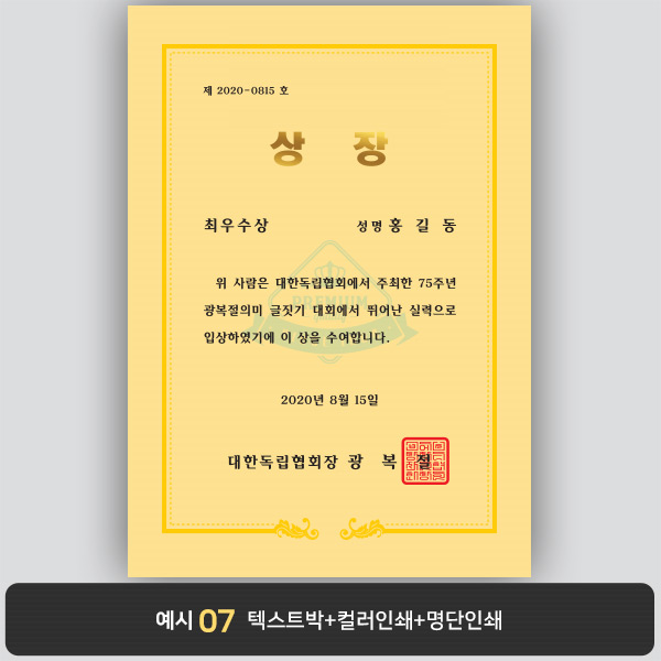 • 제품 시안 작업시 인쇄물의 오탈자 체크는 필수 입니다. 시안 확인 후 오탈자로 인한 반품 및 교환은 불가합니다.