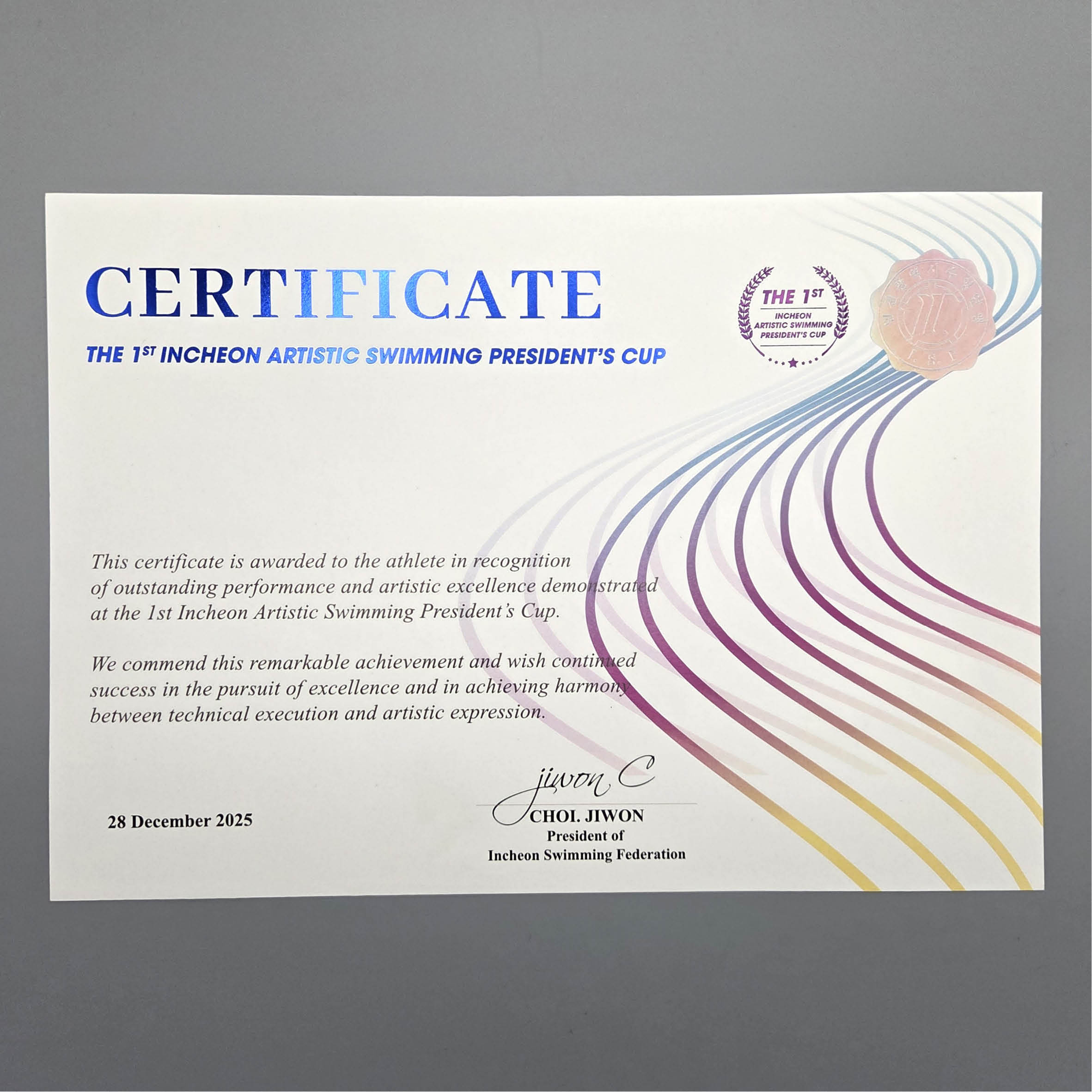프라임 상장용지 인쇄샘플 SD000948 인천수영연맹