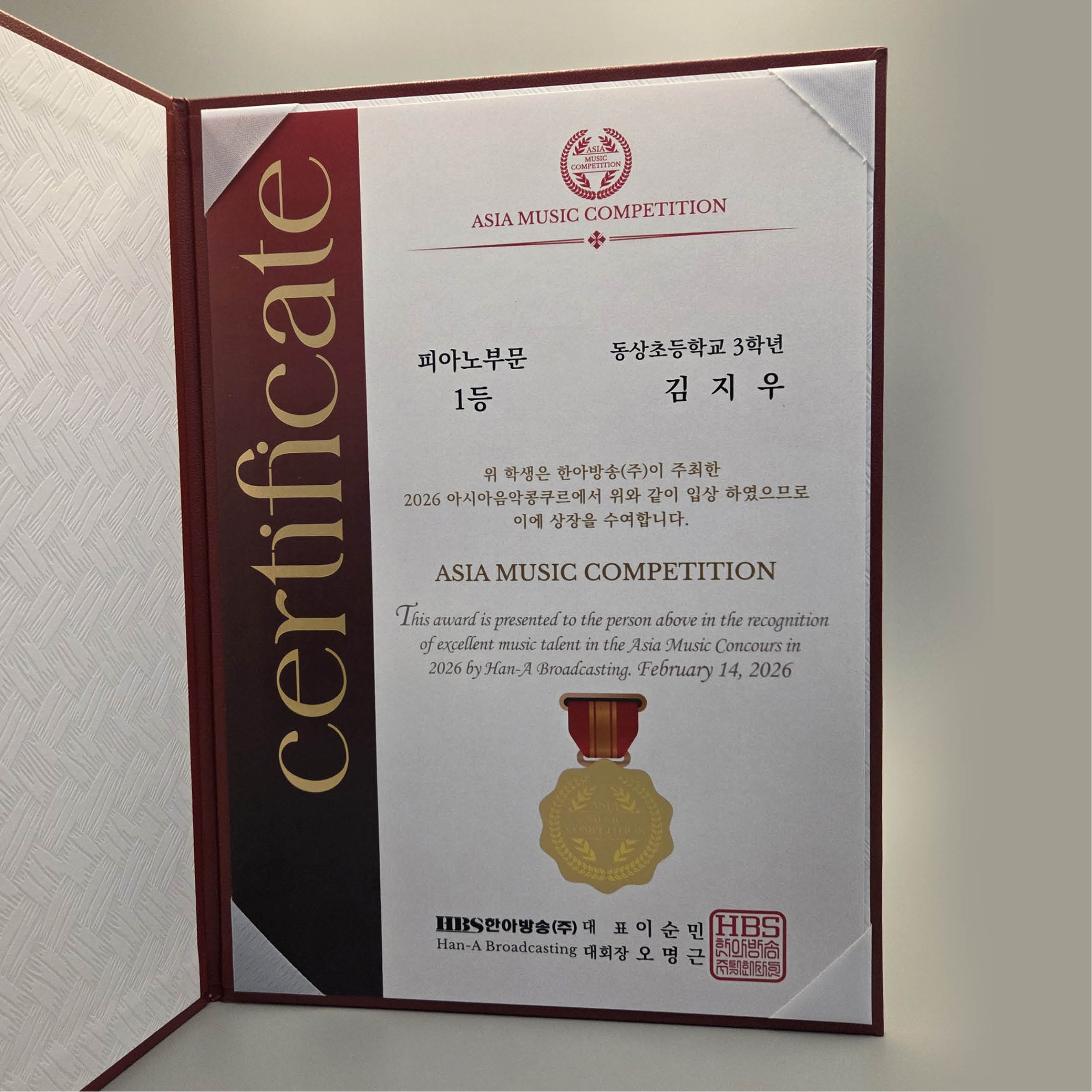 레자 상장케이스 표지금모래홀로그램박 아시아음악콩쿨