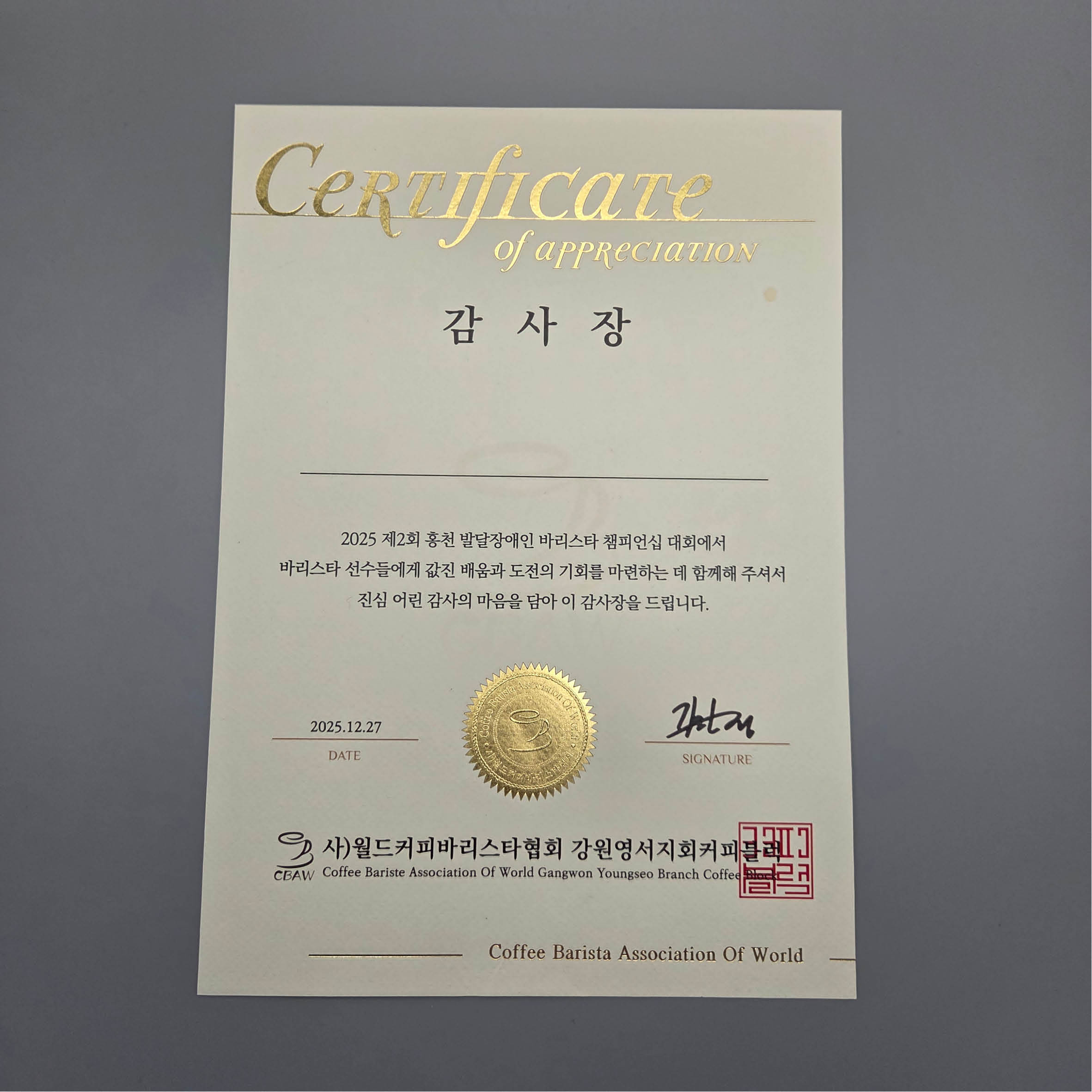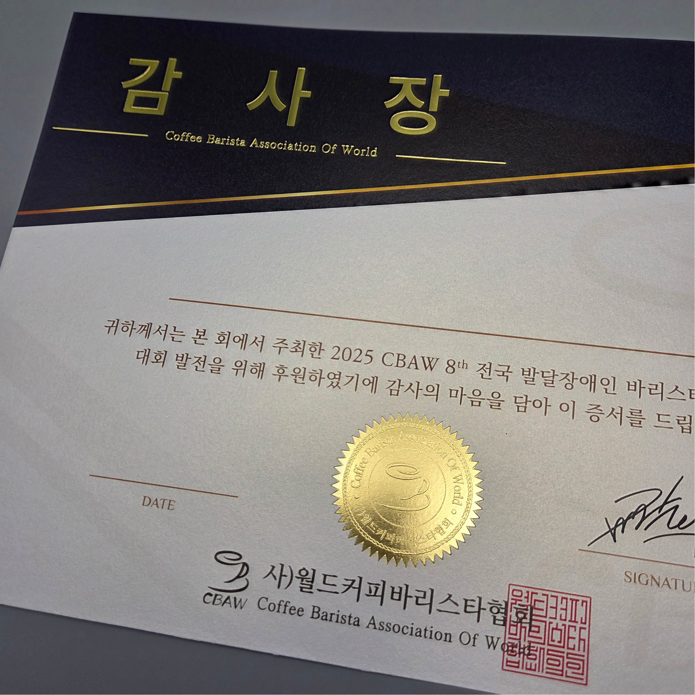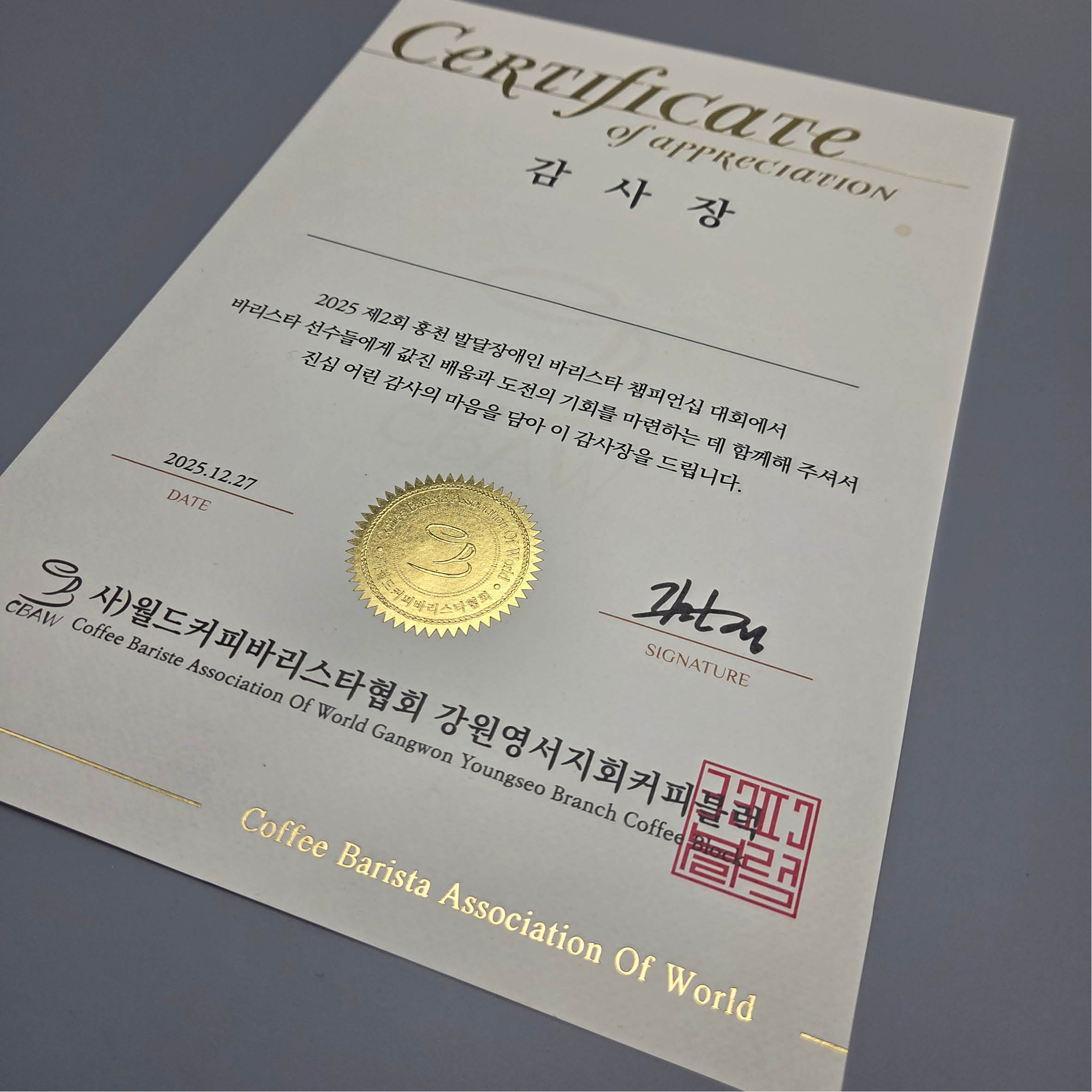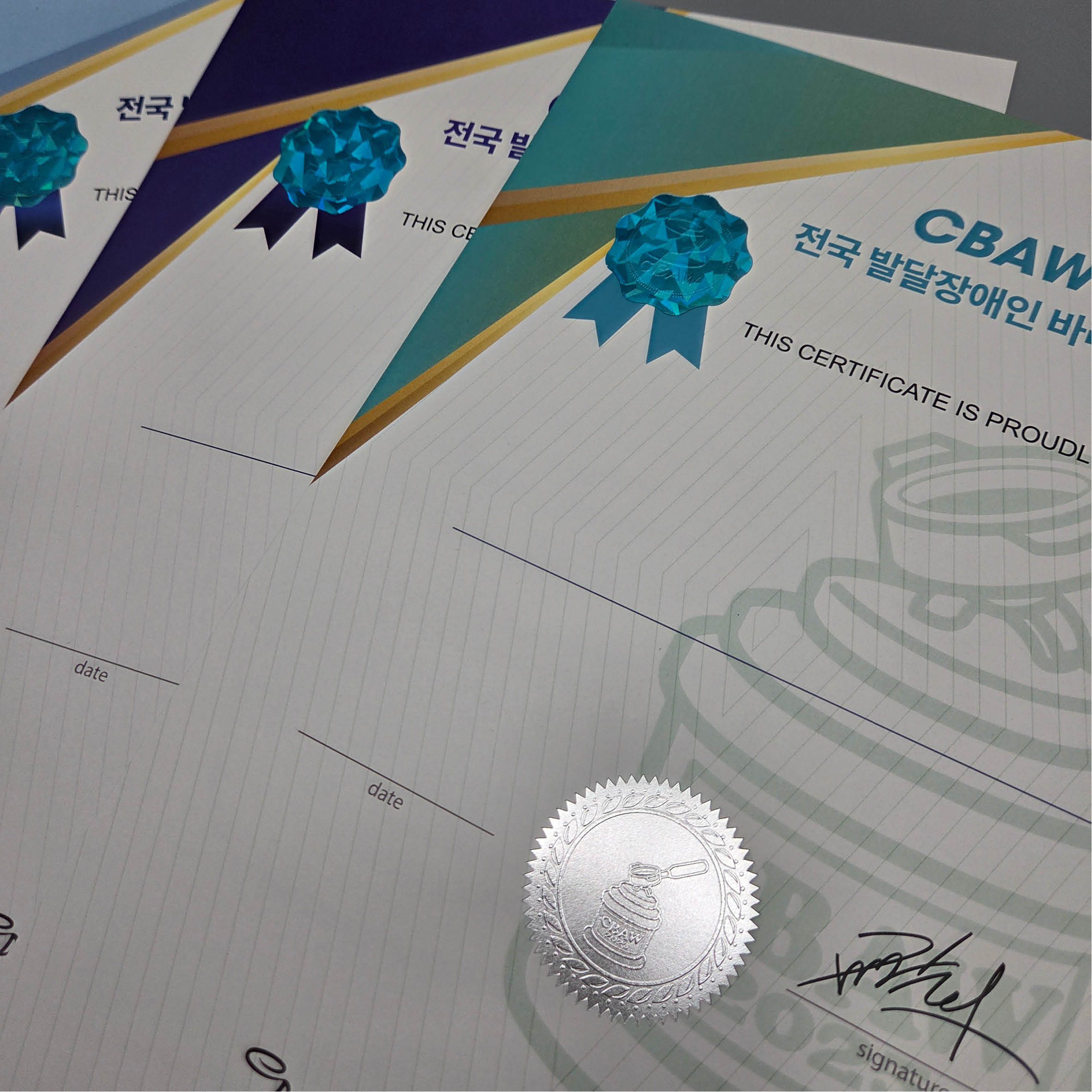 프라임 상장용지 인쇄샘플 SD000953 월드커피바리스타협회