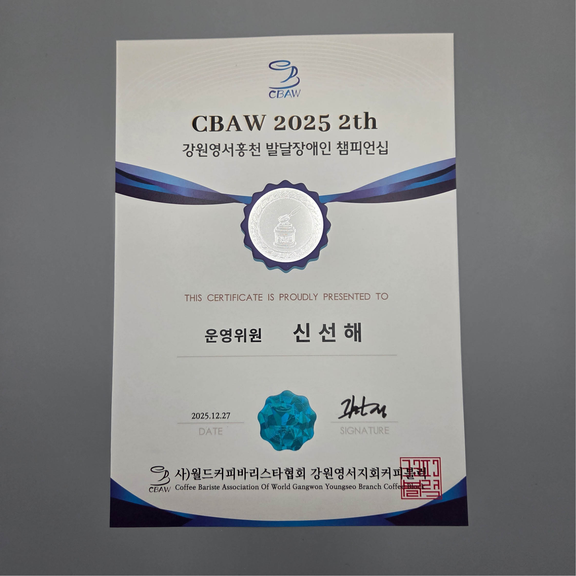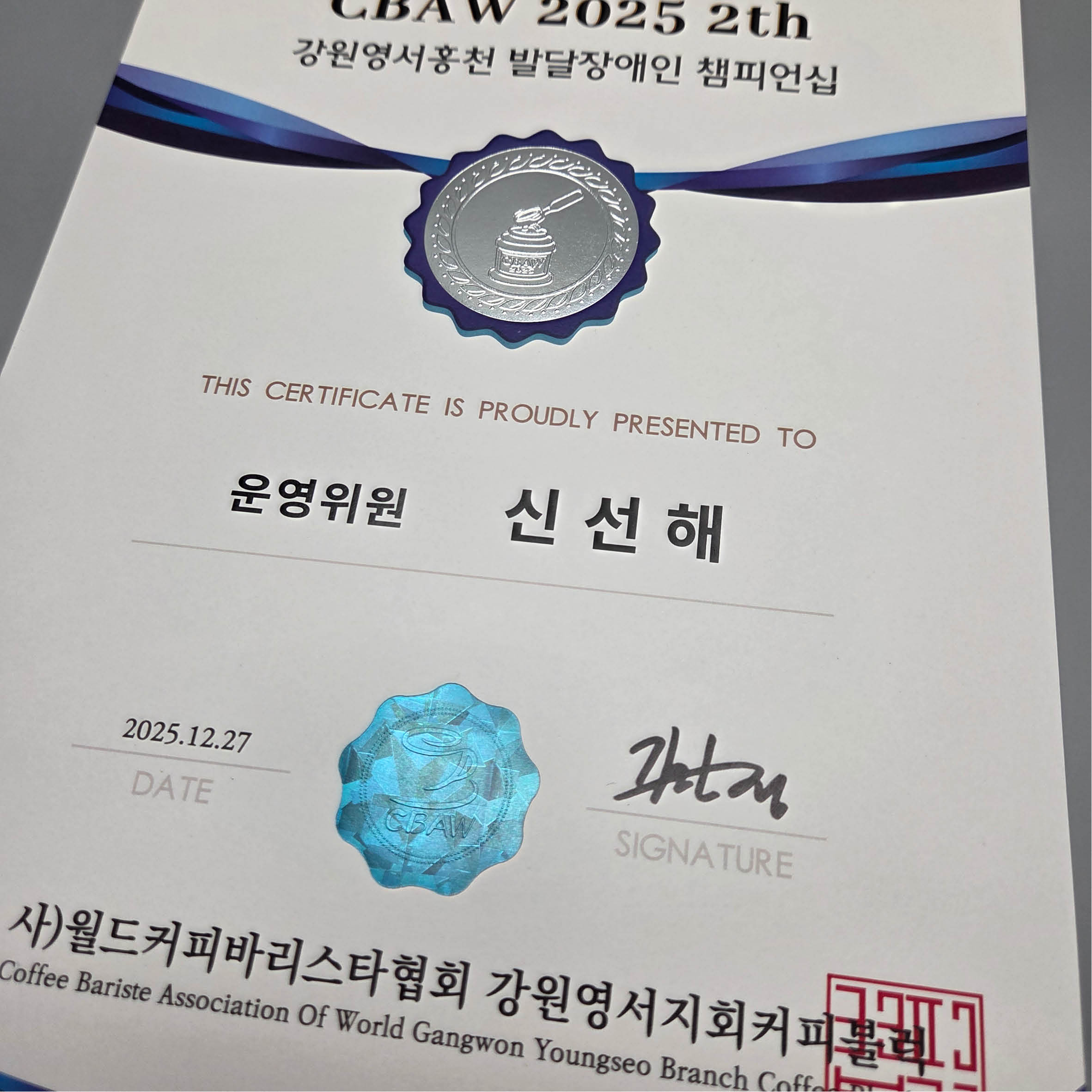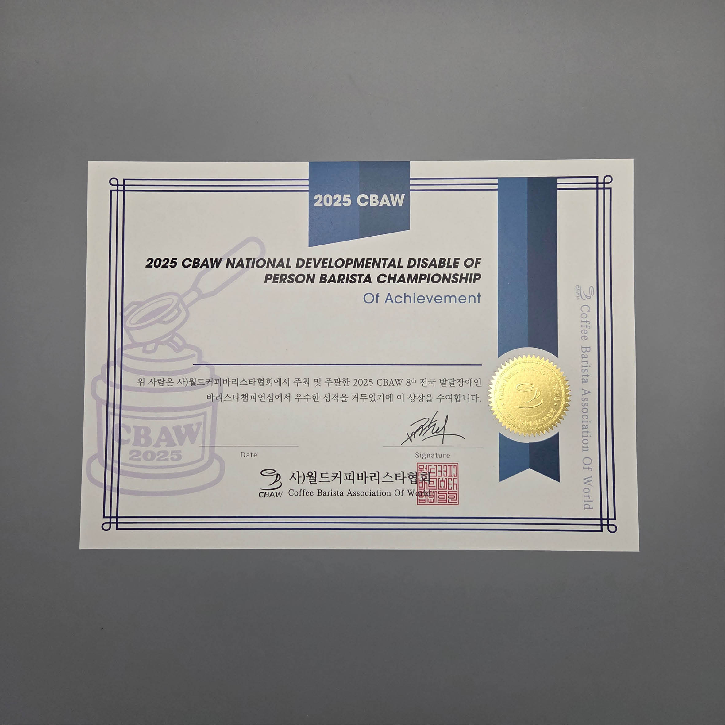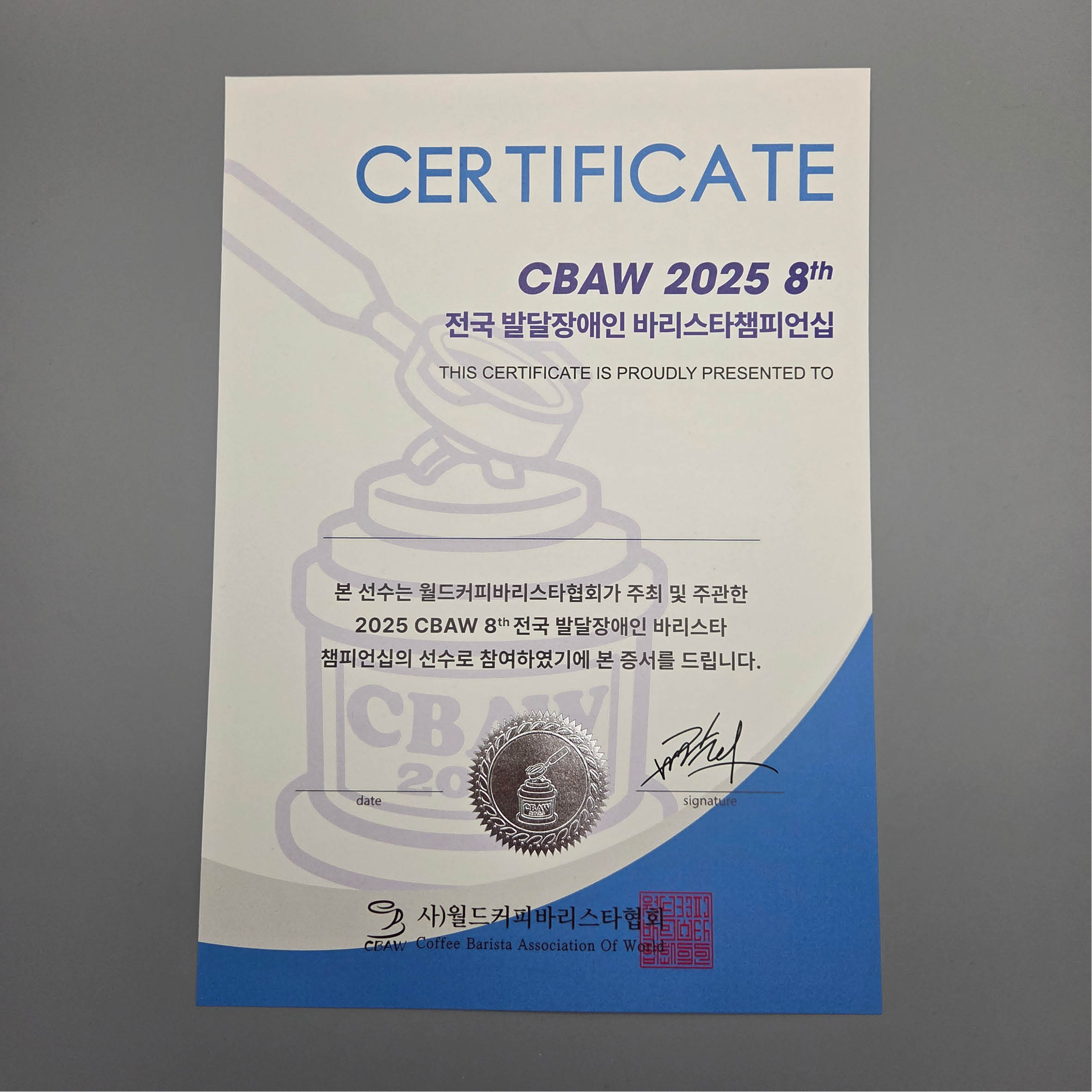 프라임 상장용지 인쇄샘플 SD000953 월드커피바리스타협회